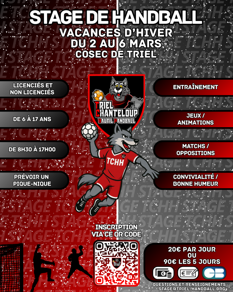 Pour tout complément d’information ou pour un paiement par chèque ou en espèces, merci d’envoyer un message à stage@triel-handball.org